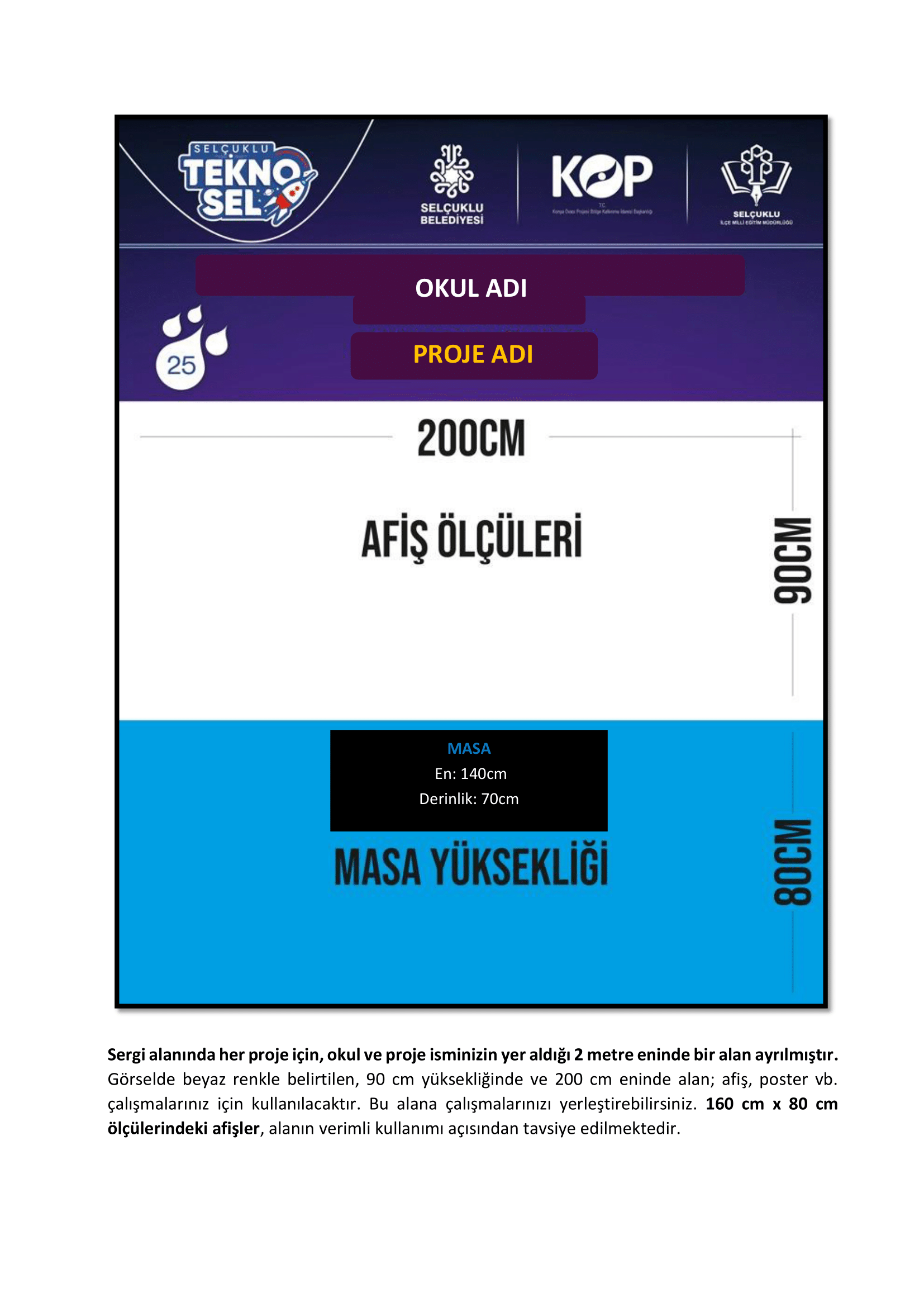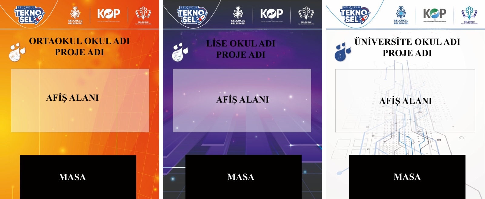 Serbest Proje Kategorisi sergi alanına iliskin poster, afis ve masa duzeni bilgileri aşağıdaki görseldeki gibidir.